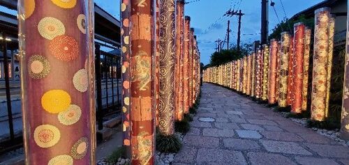 こんにちは!旅人サイファです! 今回も【京都&北近畿旅行記】の記事をお届けします。 JR嵯峨嵐山駅前のお宿に荷物を置いて、夜の嵐山を散策します。 やって来たのはこちら!夜の嵐山の新名所『キモノフォレスト』です!おおおー!美しいー! ここは、嵐電嵐…